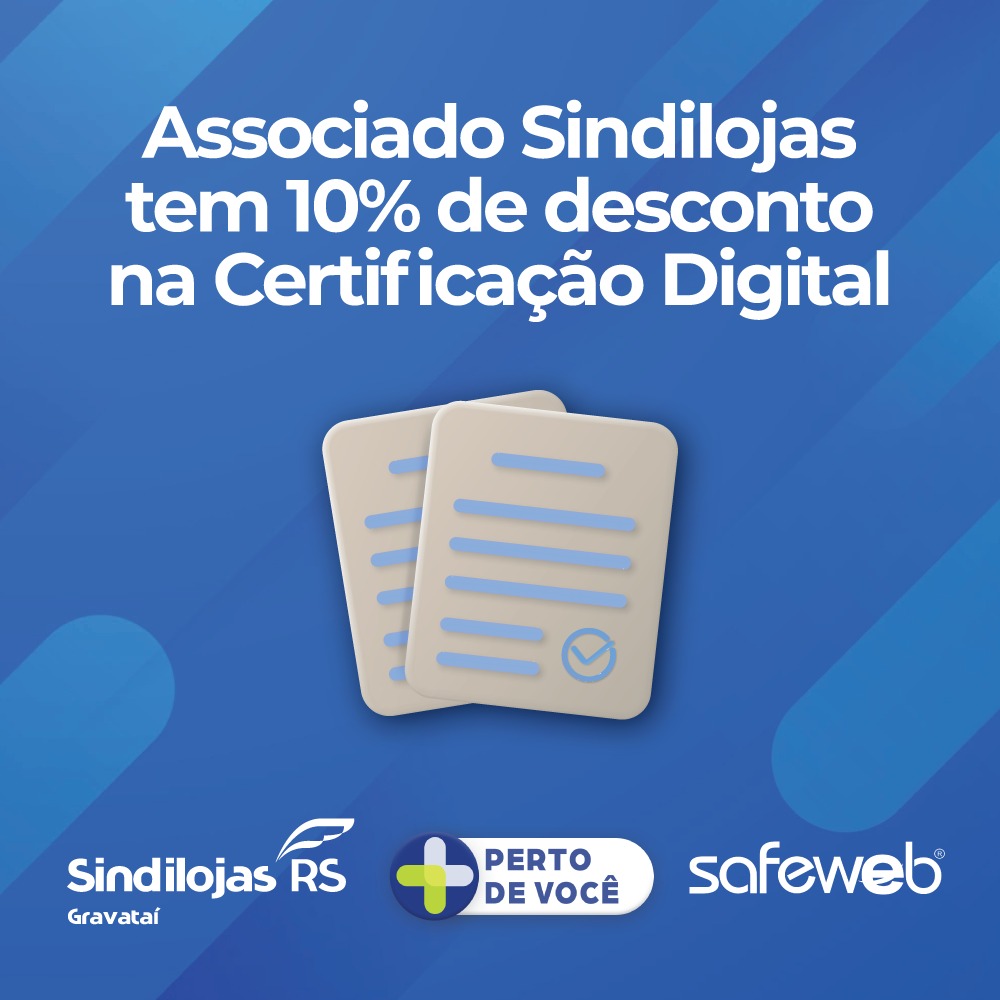 Para os interessados na aquisição do Certificação Digital, acesse o link https://sindilojasgravatai.com.br/beneficios/certificacaodigital/ ou pelo e-mail cd.sindilojas@gmail.com e aproveite! Saiba mais e acesse. Se for associado, faça a liberação do seu desconto via site.