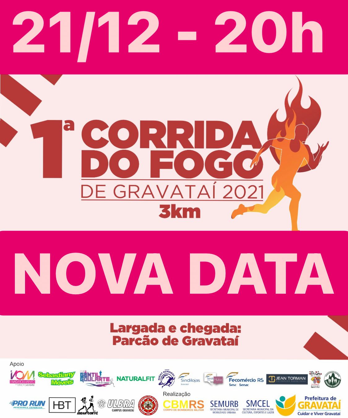 Obrigado a todos os 200 inscritos e a todos os envolvidos neste grande projeto, CORRIDA DO FOGO DE GRAVATAÍ! Nos vemos dia 21/12. Grato pela compreensão!