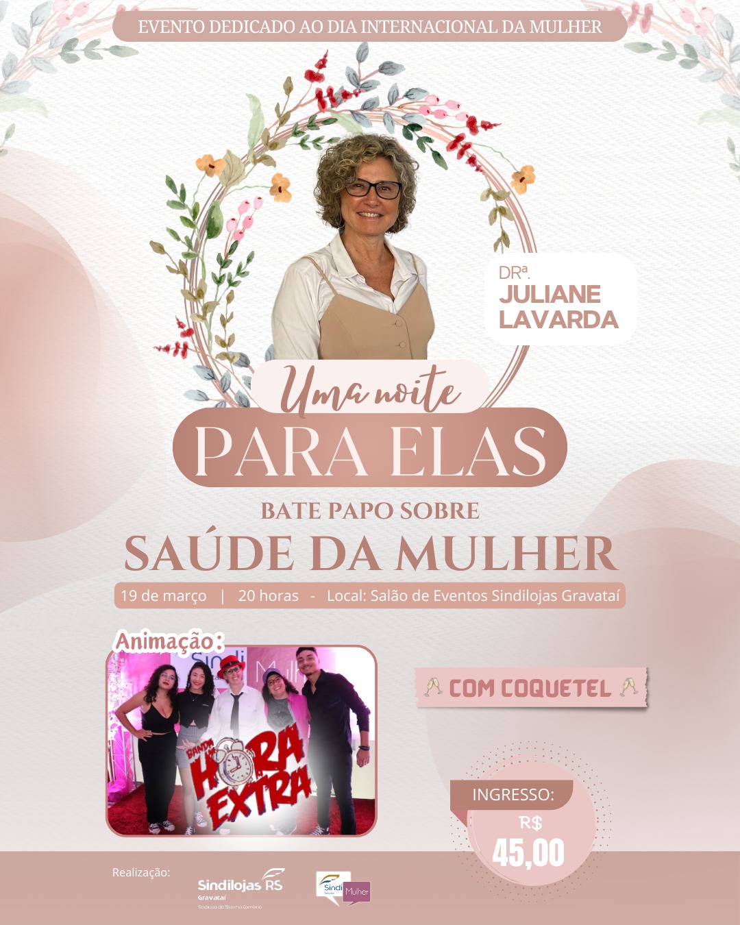 Para tornar a noite ainda mais especial, a Banda Hora Extra garantirá a animação do evento. E, claro, tudo isso acompanhado de um delicioso coquetel.
