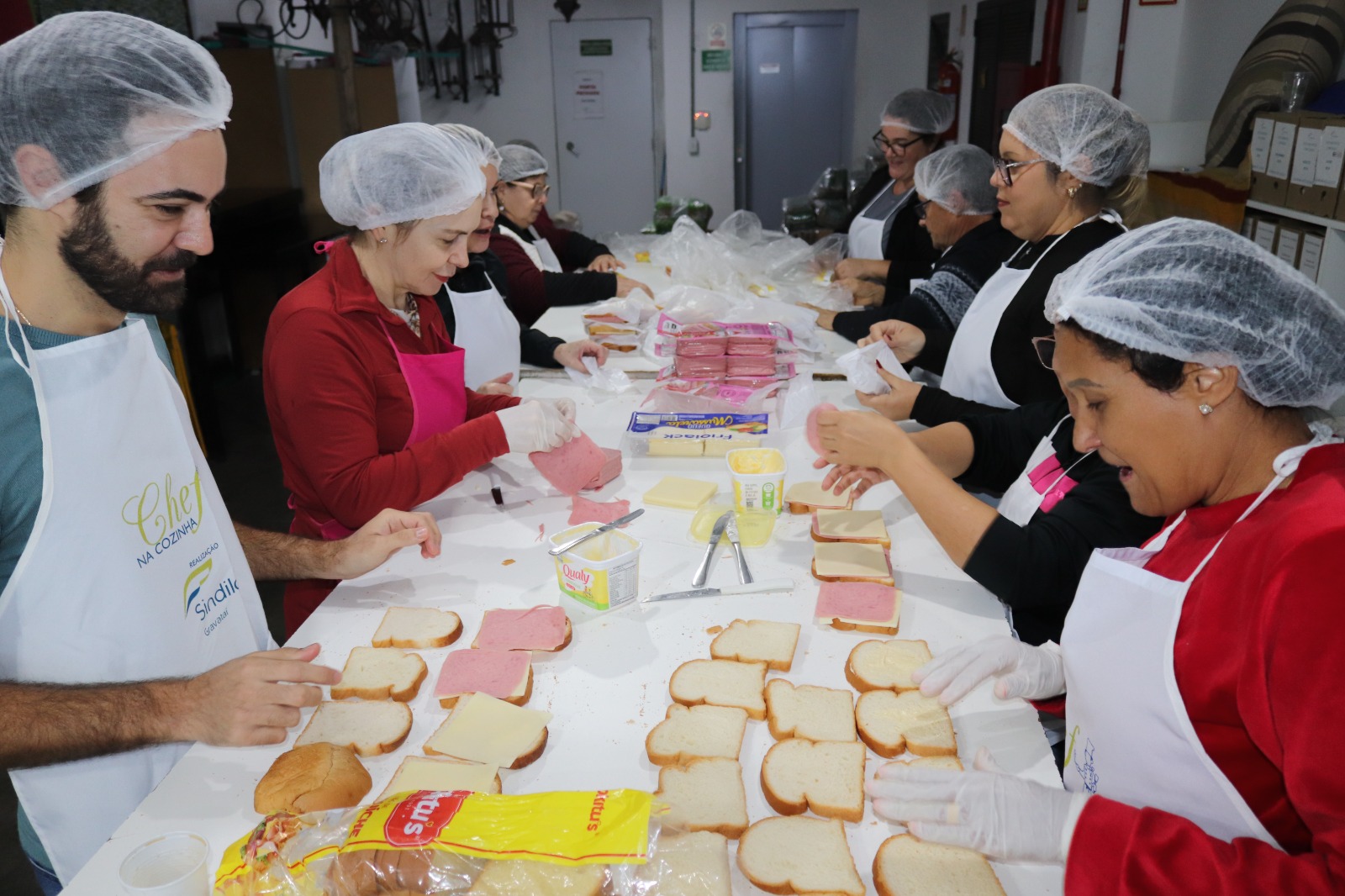 O grupo pequeno de amigos e demais voluntários se expandiu quando conseguiram a cedência do subsolo do Sindilojas Gravataí, que contempla uma estrutura completa de cozinha, mesas e utensílios para dar continuidade na preparação de alimentos.