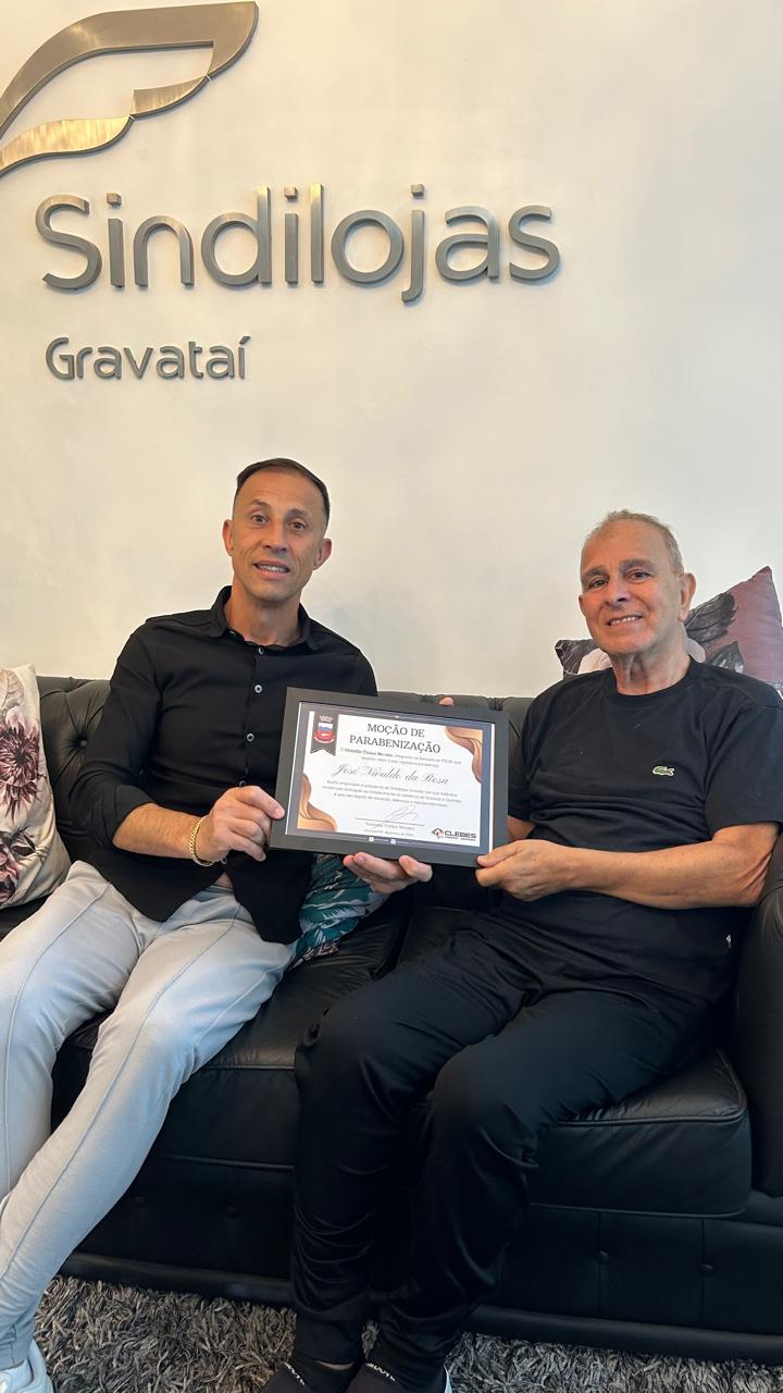 Na manhã desta quinta-feira (18), o presidente do Sindilojas Gravataí, José Rosa, recebeu uma Moção da Câmara de Vereadores de Gravataí em reconhecimento aos 18 anos de trabalho à frente da entidade e por toda a sua trajetória dedicada ao desenvolvimento do comércio local e do município.
