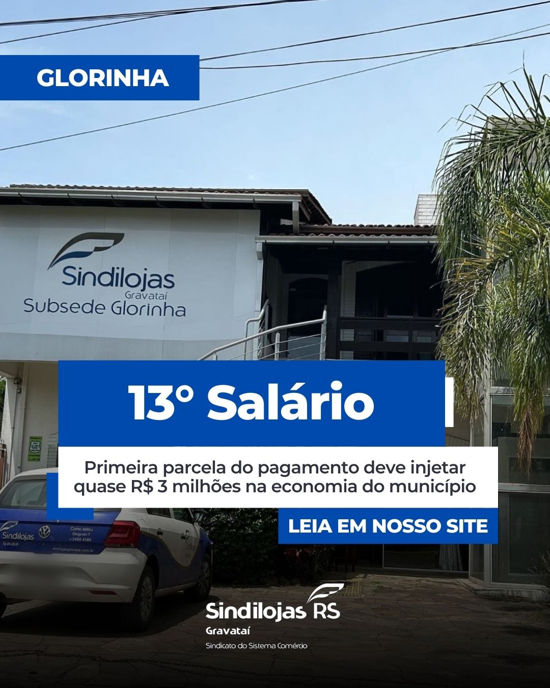Após divulgarmos ontem os números referentes ao impacto do 13º salário em Gravataí, o Sindilojas Gravataí apresenta agora os dados de Glorinha, município atendido pela nossa subsede e que também deverá sentir um importante impulso econômico neste final de ano.