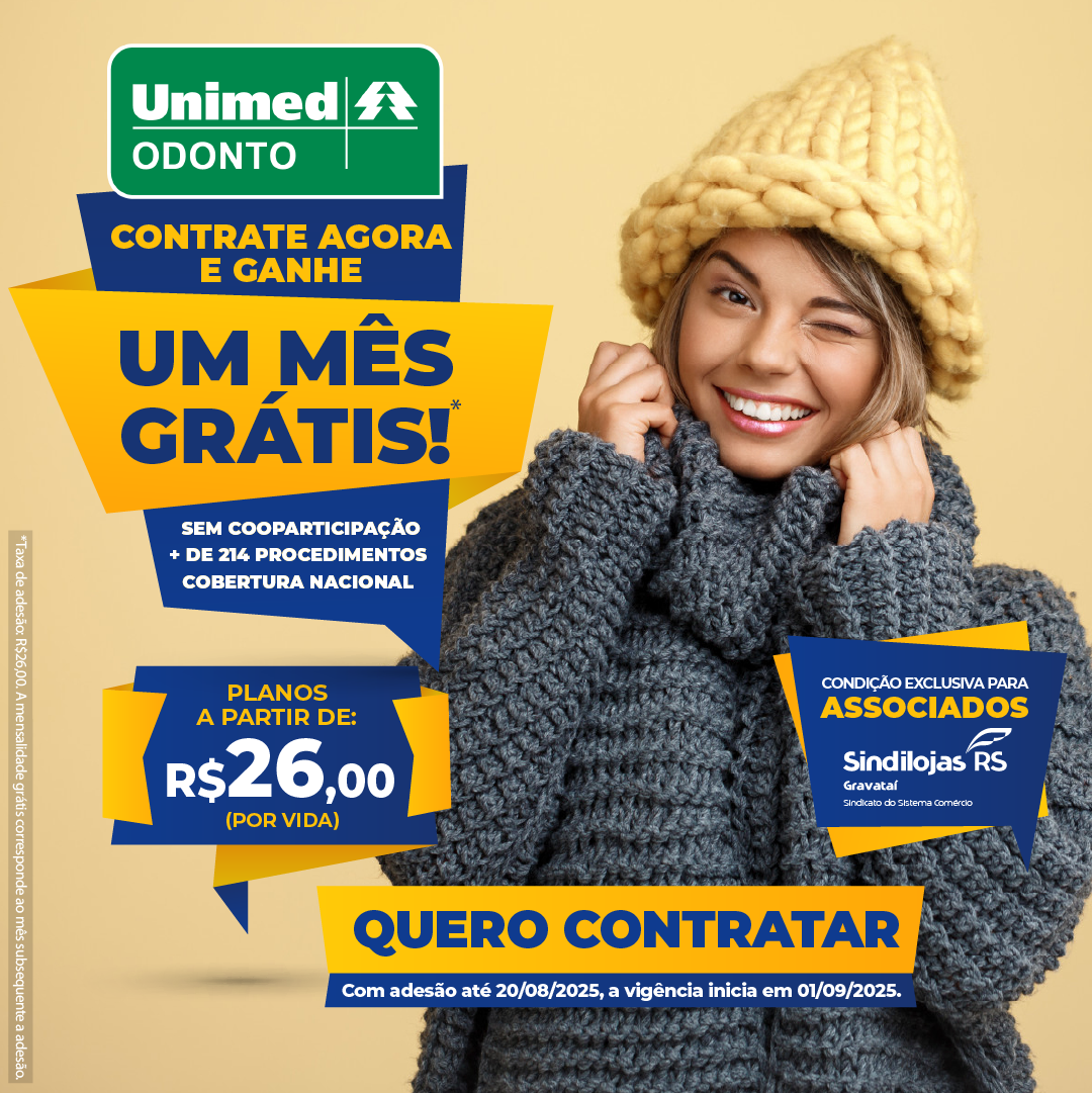 Cuidar do sorriso ficou ainda mais fácil e econômico! A Unimed Odonto lançou uma Promoção de Inverno exclusiva para os associados do Sindilojas Gravataí: