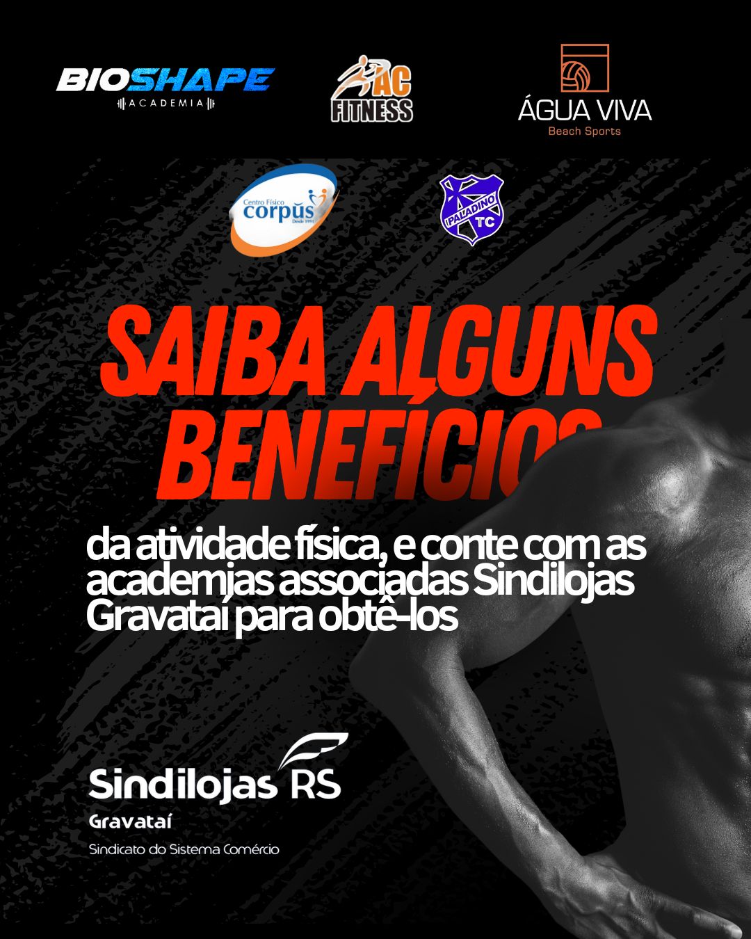 E, para você que quer obter todos estes benefícios para a sua saúde, e botar em prática aquele plano de ano novo de “esse ano vou ser fitness”, conte com as academias associadas Sindilojas Gravataí que oferecem descontos especiais para você, que também é nosso associado, por meio do Guia de Descontos: