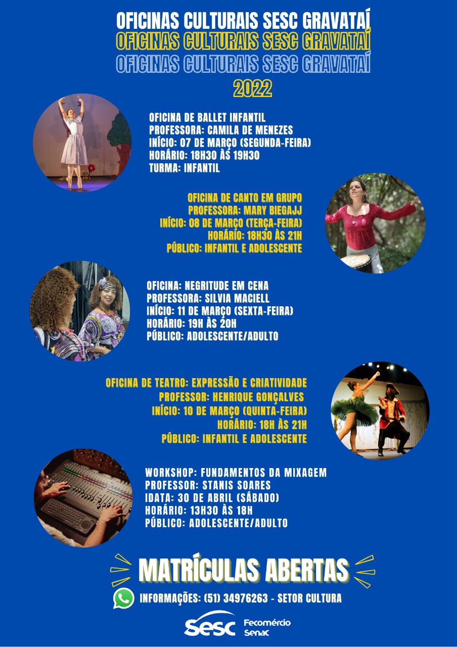 📌 Mais informações: (51) 3497.6263 ou cultura-gravatai@sesc-rs.com.br