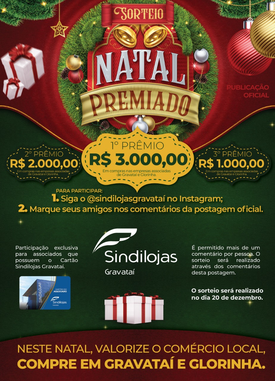 Participe da Campanha Natal Premiado do Sindilojas Gravataí.🎄🎁