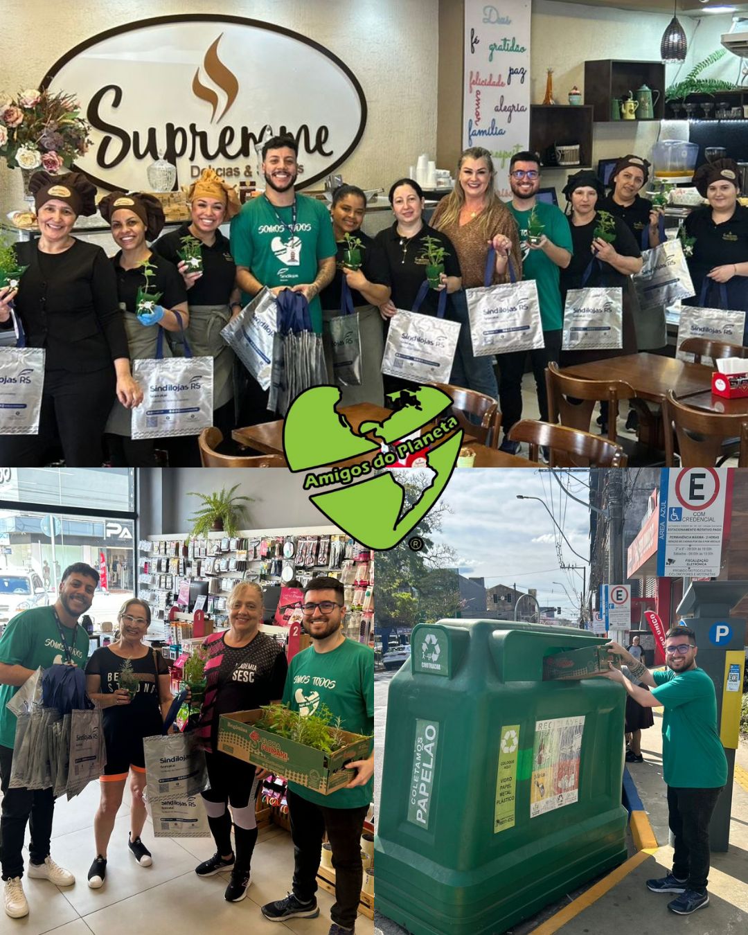 Nesta edição, a entidade promoveu a entrega de mudas de plantas em diferentes pontos da cidade: nas ruas, em lojas da Rua Coberta e também na Padaria Supremme. Ao final da atividade, a caixa utilizada para o transporte foi corretamente descartada em um container coletor de papelão, reforçando o compromisso com a responsabilidade ambiental.
